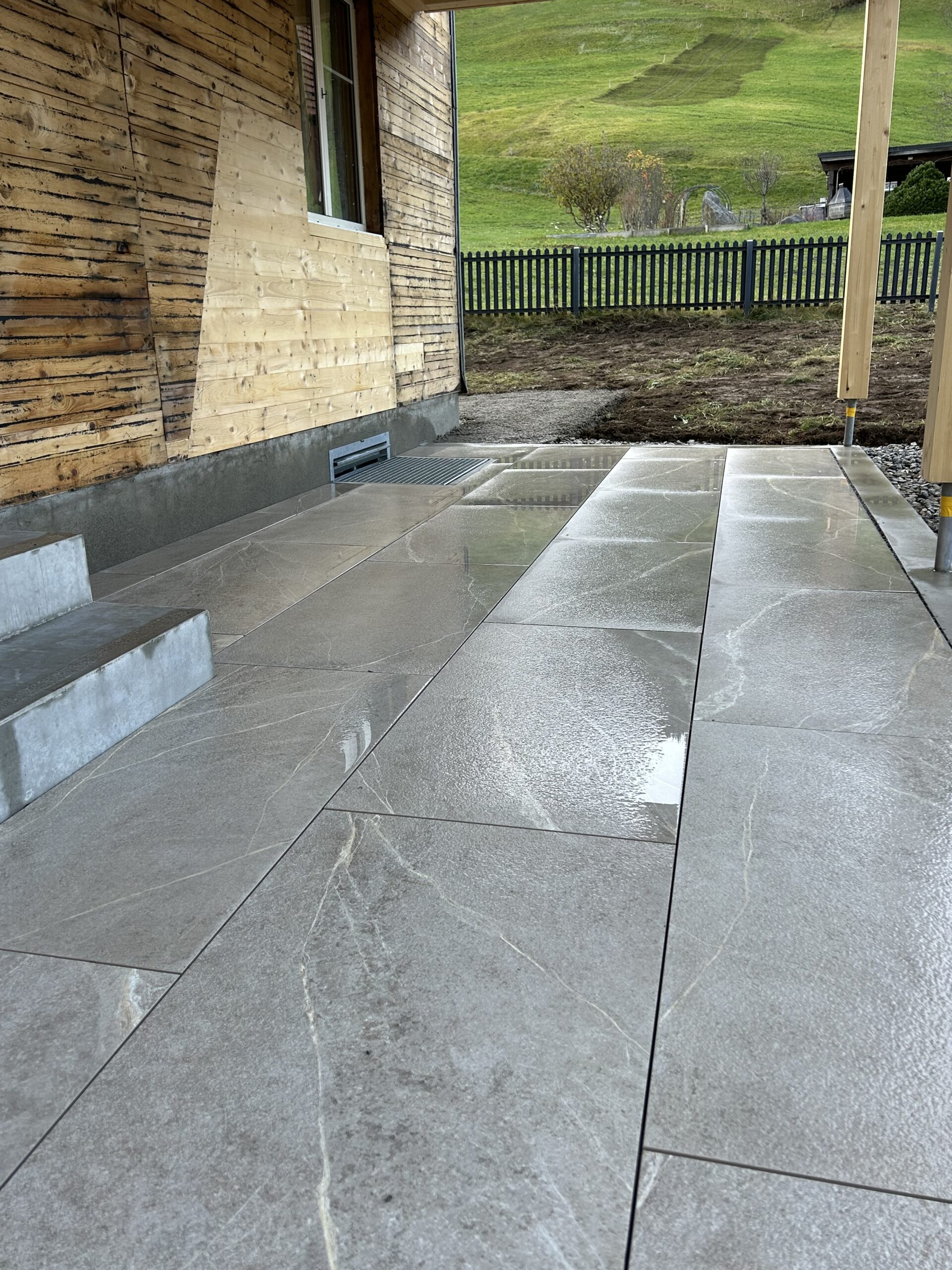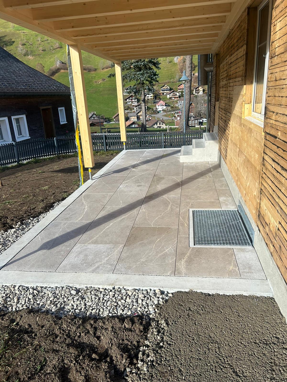 Dank hochwertigen Keramikplatten erhält der Außenbereich eine moderne, langlebige und elegante Oberfläche