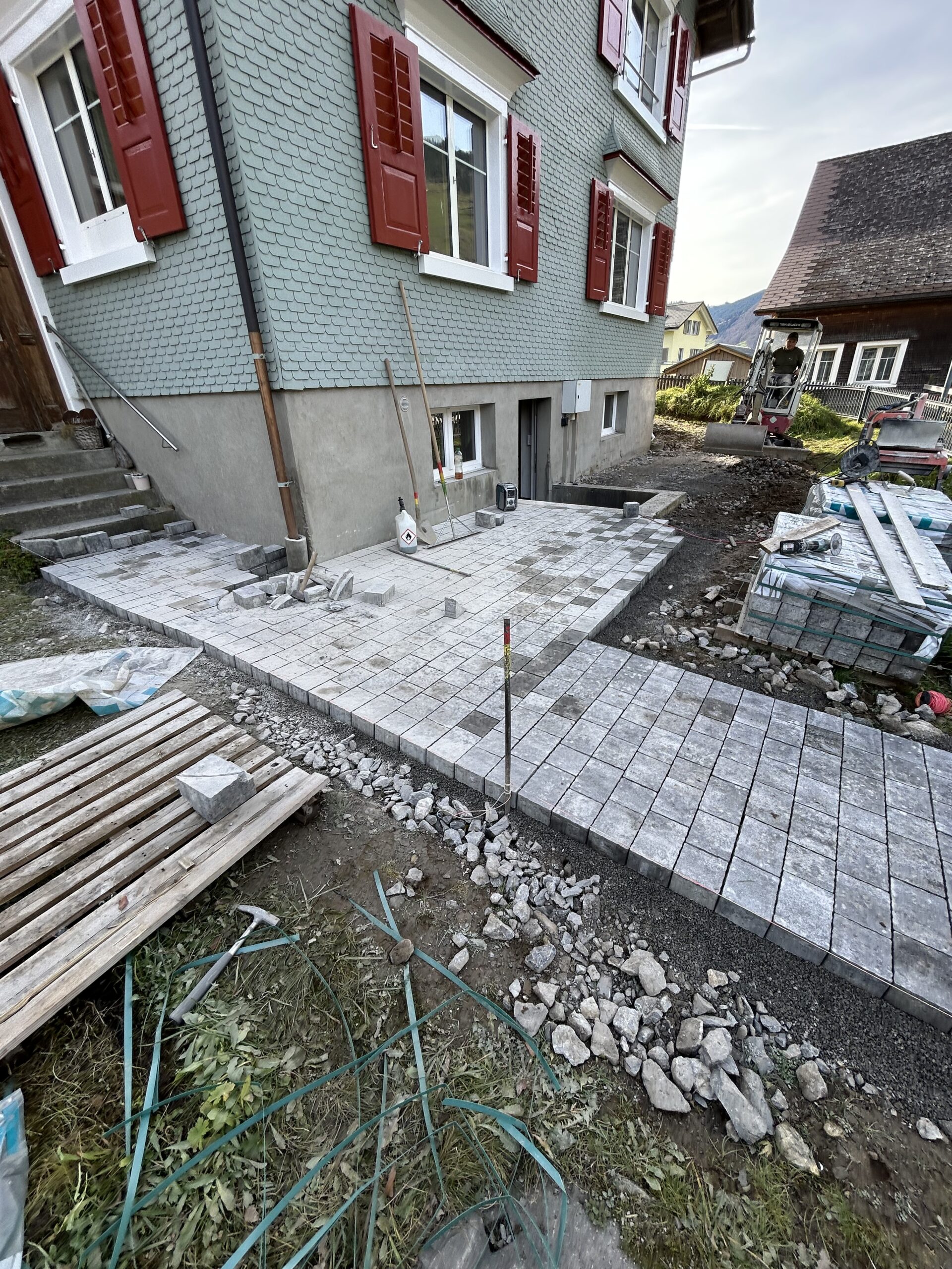 Hier ist ein neuer Platz entstanden, bei dem man bei einem Grillabend die Abendsonne geniessen kann.